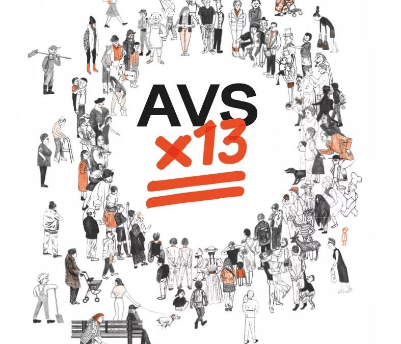 L’initiative des syndicats de l’Union Syndicale Suisse, « mieux vivre à la retraite, pour une 13ème rente » sera soumise en votation en mars 2024. Pour obtenir la rente maximale de Fr. 2’450.- , le revenu annuel moyen devrait être d’au moins 88 200 francs par année pour 44 années de cotisations. Peu de salariés arrivent au maximum et la rente mensuelle moyenne se situe environ à Fr. 1800.–. L’AVS peine donc à atteindre son but c’est-à-dire à couvrir les besoins vitaux. Pourtant les perspectives financières de la Confédération confirment la bonne santé de l’AVS. Ces prochaines années, elle réalisera un excédent annuel de 3 milliards de francs.
